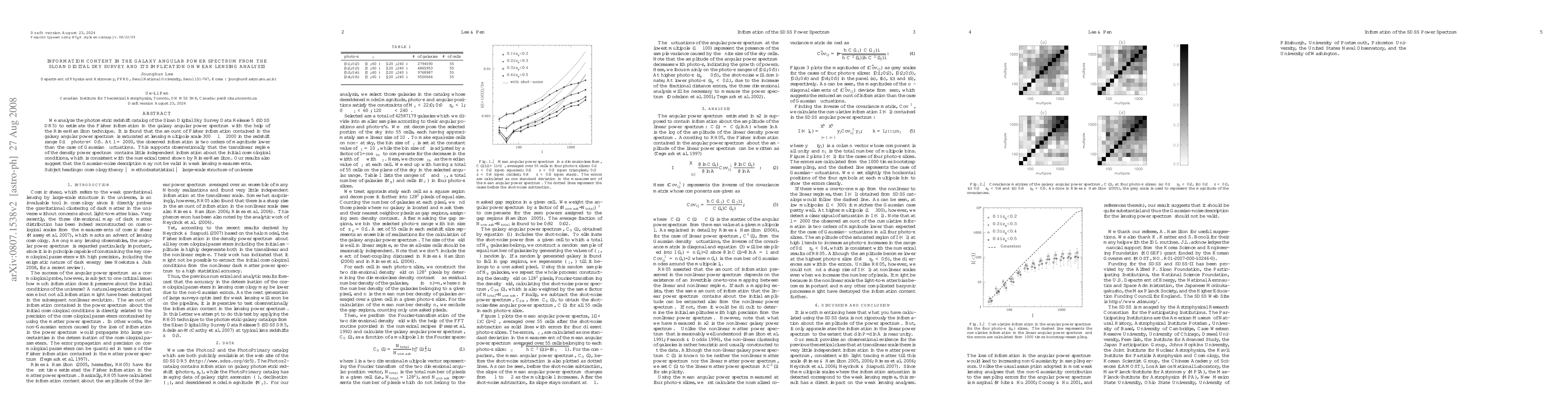 This paper analyzes the Sloan Digital Sky Survey DR5 data to estimate the Fisher information in the galaxy angular power spectrum, finding that it is saturated at certain multipole scales, indicating limited information in the translinear regime. The study suggests that Gaussian-noise assumptions may not hold for weak lensing measurements.