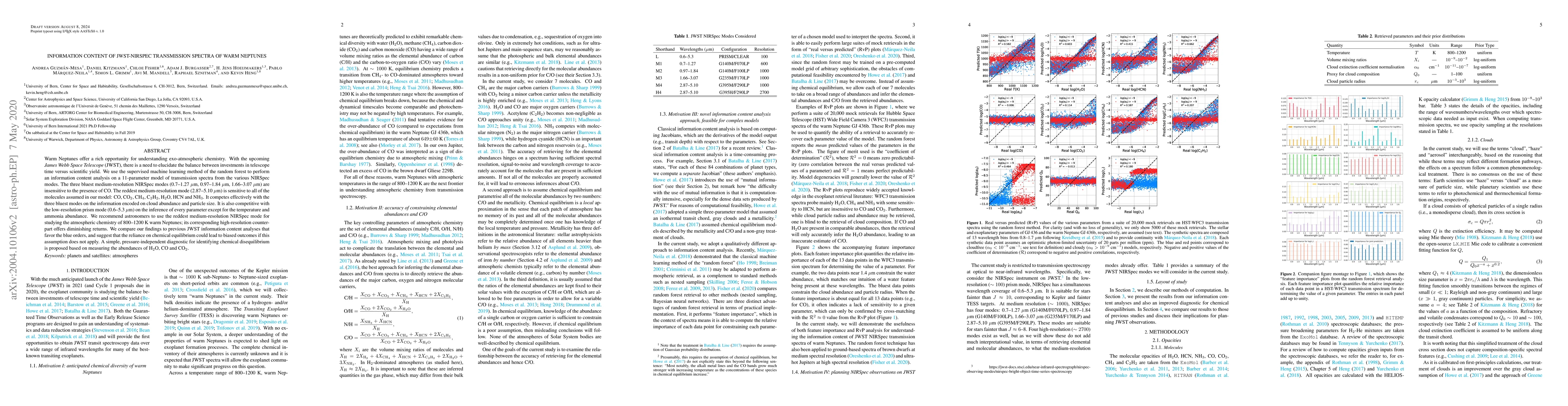 Warm Neptunes offer a rich opportunity for understanding exo-atmospheric chemistry. With the upcoming James Webb Space Telescope (JWST), there is a need to elucidate the balance between investments in telescope time versus scientific yield. We use the supervised machine learning method of the random forest to perform an information content analysis on a 11-parameter model of transmission spectra from the various NIRSpec modes. The three bluest medium-resolution NIRSpec modes (0.7 - 1.27 microns, 0.97 - 1.84 microns, 1.66 - 3.07 microns) are insensitive to the presence of CO. The reddest medium-resolution mode (2.87 - 5.10 microns) is sensitive to all of the molecules assumed in our model: CO, CO2, CH4, C2H2, H2O, HCN and NH3. It competes effectively with the three bluest modes on the information encoded on cloud abundance and particle size. It is also competitive with the low-resolution prism mode (0.6 - 5.3 microns) on the inference of every parameter except for the temperature and ammonia abundance. We recommend astronomers to use the reddest medium-resolution NIRSpec mode for studying the atmospheric chemistry of 800-1200 K warm Neptunes; its corresponding high-resolution counterpart offers diminishing returns. We compare our findings to previous JWST information content analyses that favor the blue orders, and suggest that the reliance on chemical equilibrium could lead to biased outcomes if this assumption does not apply. A simple, pressure-independent diagnostic for identifying chemical disequilibrium is proposed based on measuring the abundances of H2O, CO and CO2.
