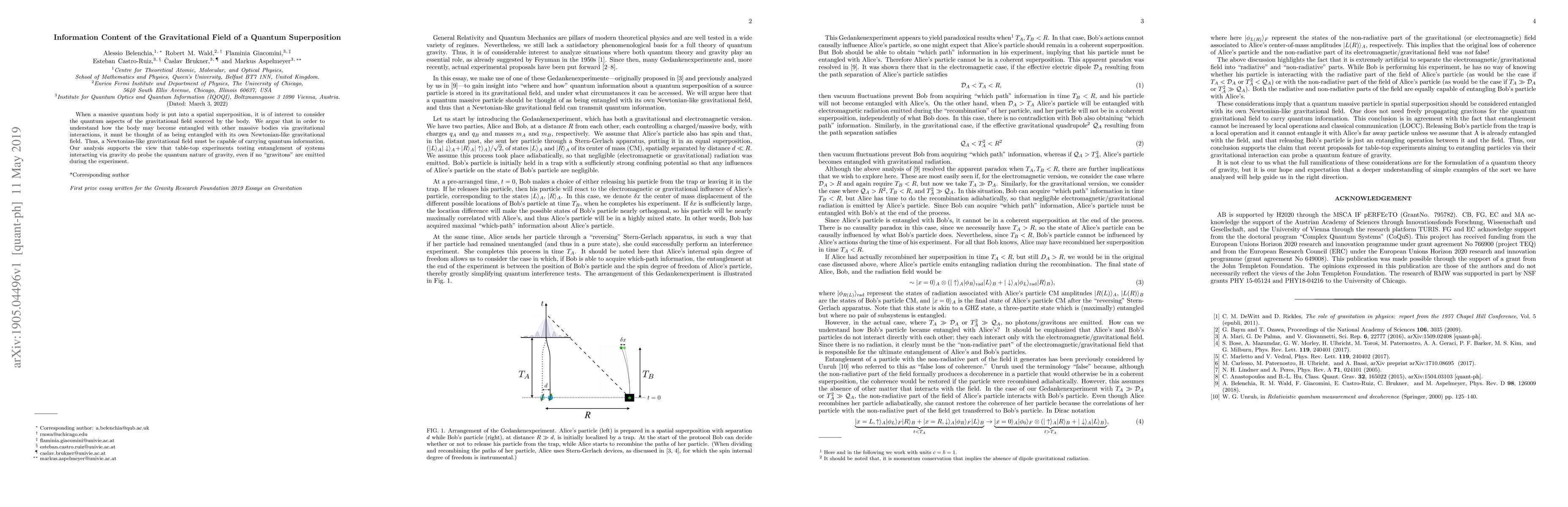 This paper explores the quantum entanglement of a massive quantum body in a spatial superposition and its gravitational field, arguing that the gravitational field itself can carry quantum information. The study suggests that tabletop experiments probing gravitational entanglement reveal the quantum nature of gravity.