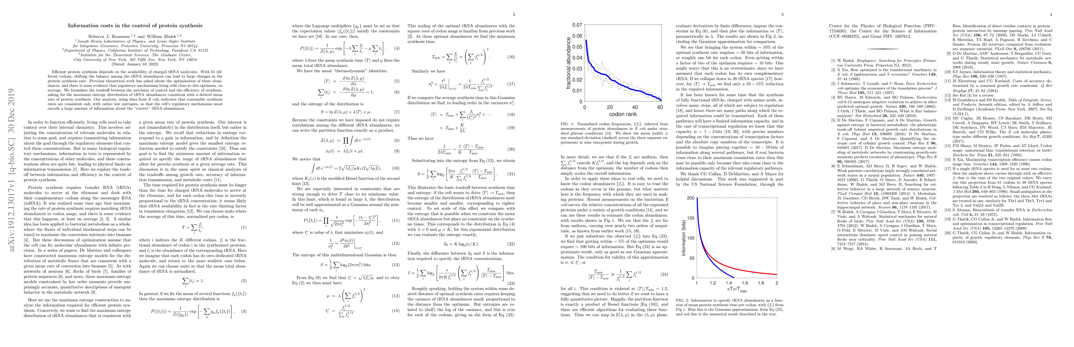 The paper presents a theoretical framework for understanding the tradeoff between information and efficiency in protein synthesis, using maximum entropy principles and data-driven analysis from E. coli.