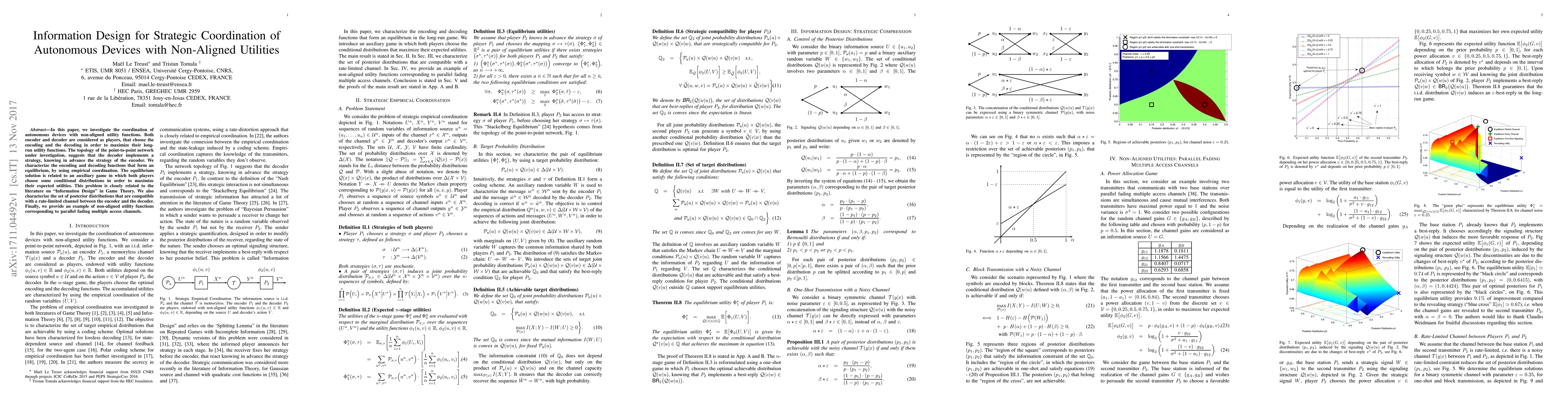 Researchers investigated how autonomous devices with non-aligned utility functions can coordinate with each other, finding that optimal strategies involve conditional distributions that maximize expected utilities. This problem is related to information design in game theory and has implications for network coordination and channel optimization.