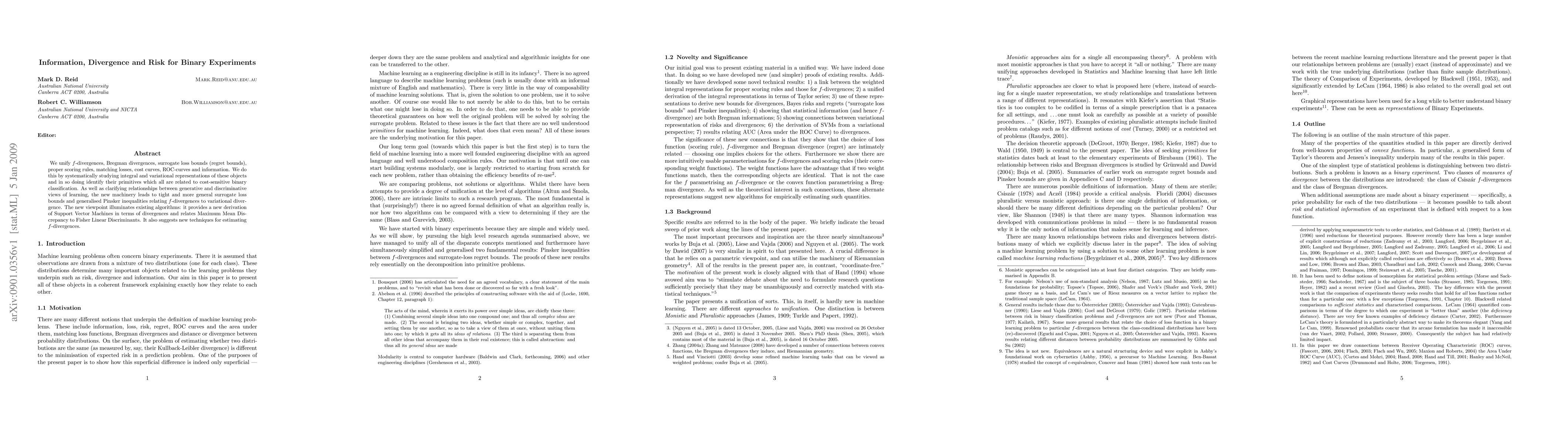 We unify f-divergences, Bregman divergences, surrogate loss bounds (regret bounds), proper scoring rules, matching losses, cost curves, ROC-curves and information. We do this by systematically studying integral and variational representations of these objects and in so doing identify their primitives which all are related to cost-sensitive binary classification. As well as clarifying relationships between generative and discriminative views of learning, the new machinery leads to tight and more general surrogate loss bounds and generalised Pinsker inequalities relating f-divergences to variational divergence. The new viewpoint illuminates existing algorithms: it provides a new derivation of Support Vector Machines in terms of divergences and relates Maximum Mean Discrepancy to Fisher Linear Discriminants. It also suggests new techniques for estimating f-divergences.