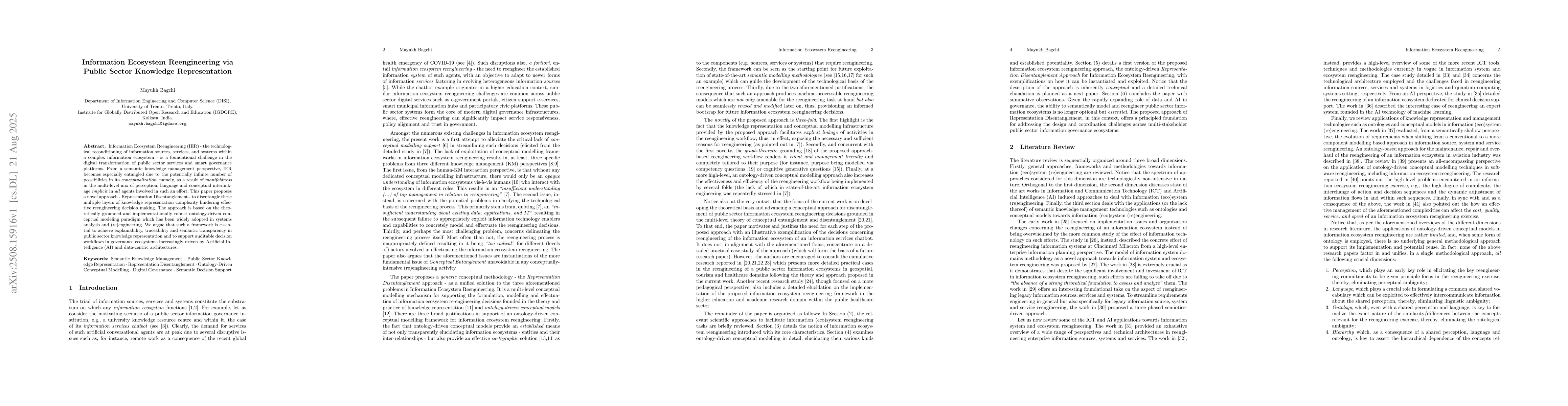 Information Ecosystem Reengineering (IER) -- the technological reconditioning of information sources, services, and systems within a complex information ecosystem -- is a foundational challenge in the digital transformation of public sector services and smart governance platforms. From a semantic knowledge management perspective, IER becomes especially entangled due to the potentially infinite number of possibilities in its conceptualization, namely, as a result of manifoldness in the multi-level mix of perception, language and conceptual interlinkage implicit in all agents involved in such an effort. This paper proposes a novel approach -- Representation Disentanglement -- to disentangle these multiple layers of knowledge representation complexity hindering effective reengineering decision making. The approach is based on the theoretically grounded and implementationally robust ontology-driven conceptual modeling paradigm which has been widely adopted in systems analysis and (re)engineering. We argue that such a framework is essential to achieve explainability, traceability and semantic transparency in public sector knowledge representation and to support auditable decision workflows in governance ecosystems increasingly driven by Artificial Intelligence (AI) and data-centric architectures.