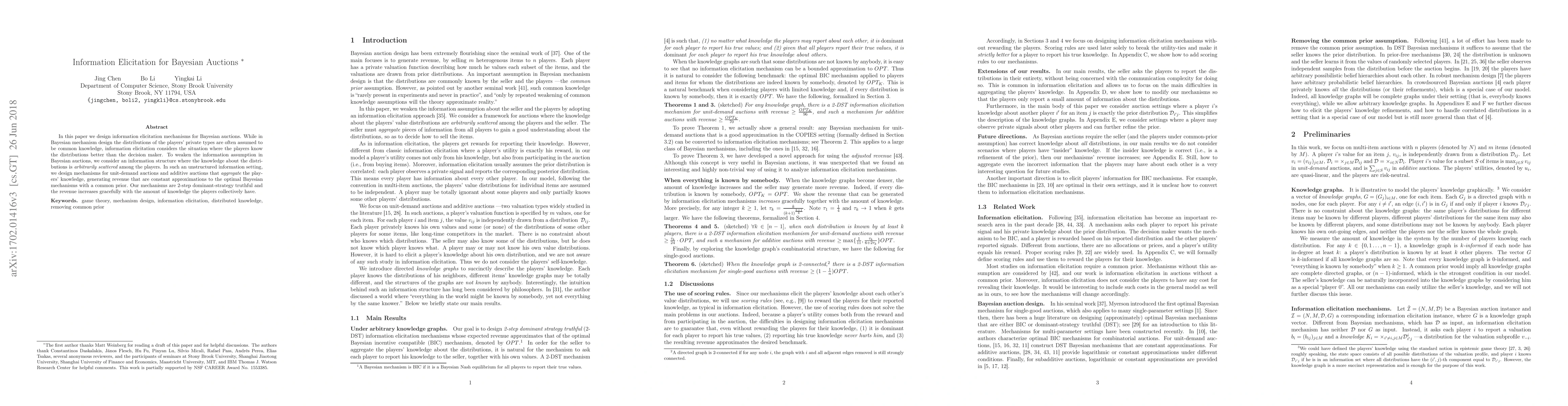 This paper designs information elicitation mechanisms for Bayesian auctions where players possess better knowledge of their type distributions than the auctioneer. It proposes mechanisms for unit-demand and additive auctions that aggregate players' knowledge, achieving constant approximation to optimal revenue while remaining 2-step dominant-strategy truthful.