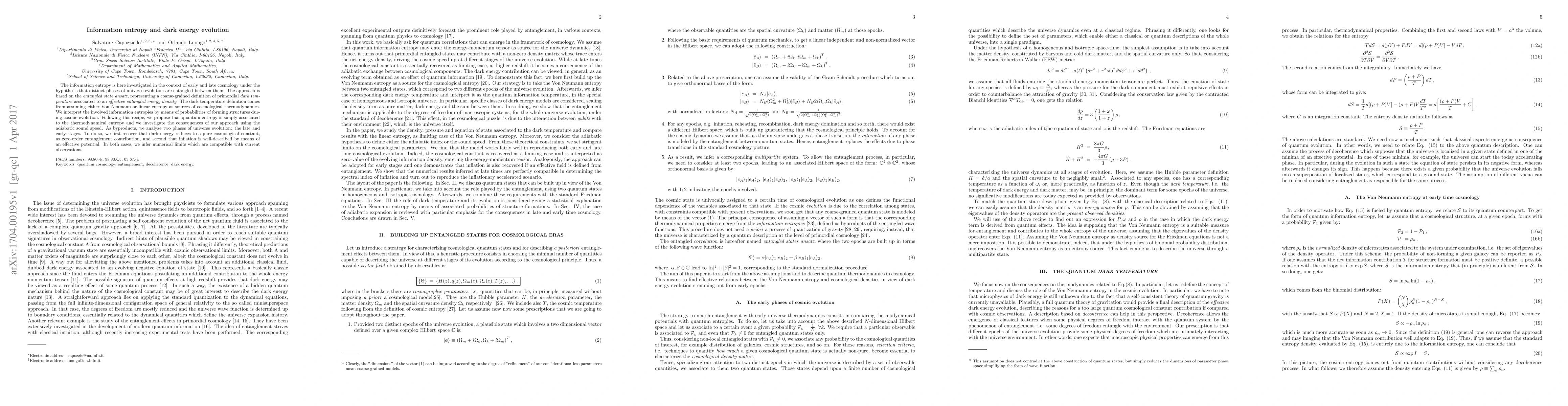 This paper explores how information entropy in early and late universe evolution are connected through an entangled state approach, proposing a link between quantum entropy and thermodynamic entropy, with implications for understanding dark energy and inflation.