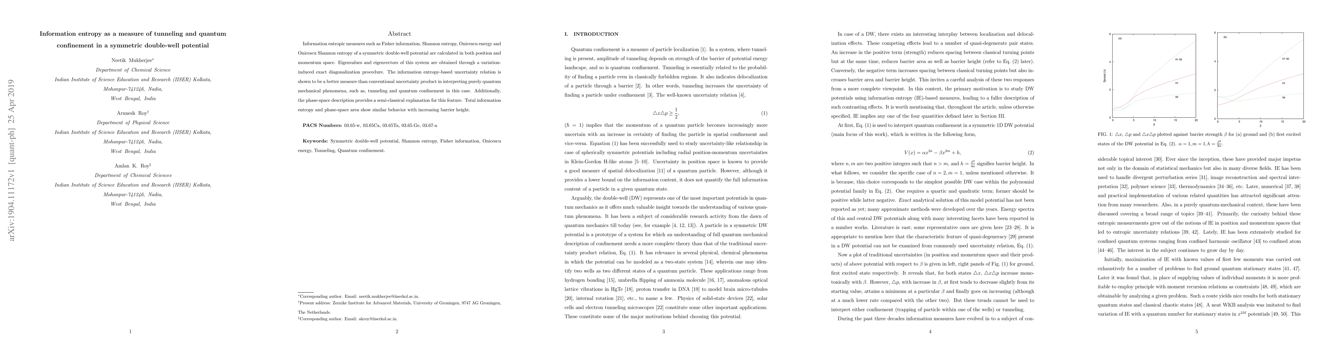 This paper explores how information entropy can better predict tunneling and quantum confinement in a double-well potential, outperforming conventional uncertainty measures.