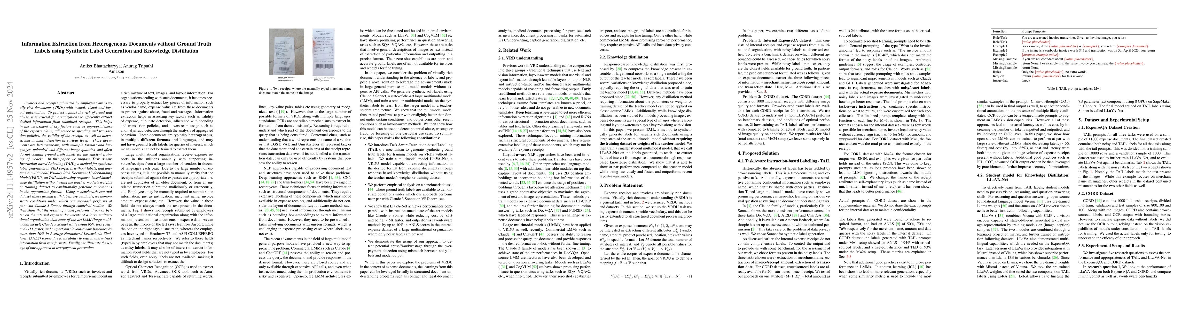 This paper introduces TAIL, a method for generating synthetic labels from heterogenous Visually Rich Documents (VRDs) without ground truth, using synthetic label generation and knowledge distillation. It outperforms state-of-the-art models in expense document analysis, achieving similar performance at 85% lower cost and faster speed, and demonstrates effective application in overpayment prevention.