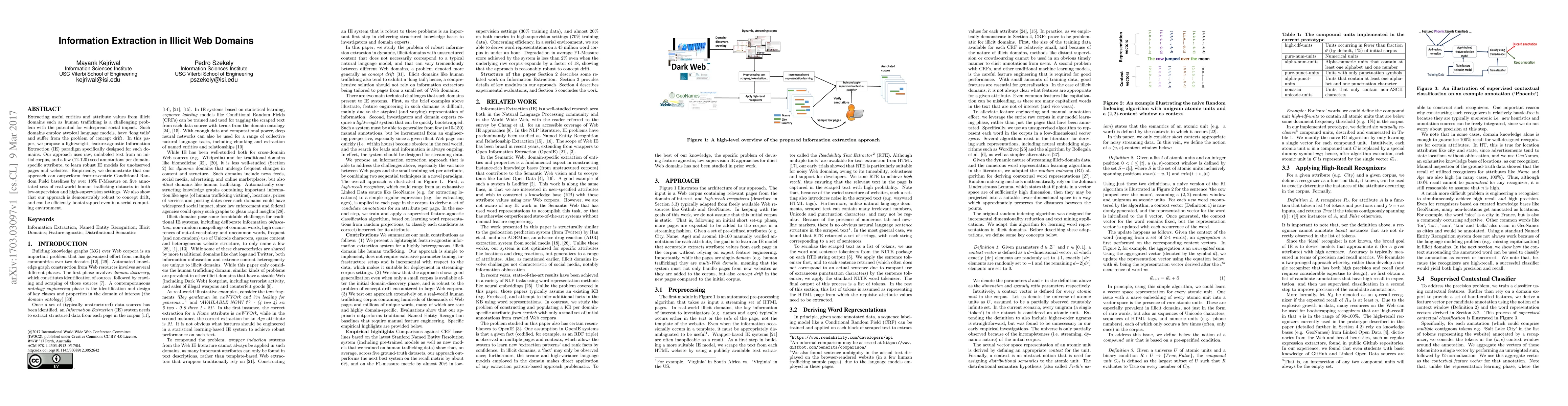 This research paper proposes a lightweight approach to information extraction in illicit domains like human trafficking, outperforming existing baselines by 18% F-Measure in low- and high-supervision settings.