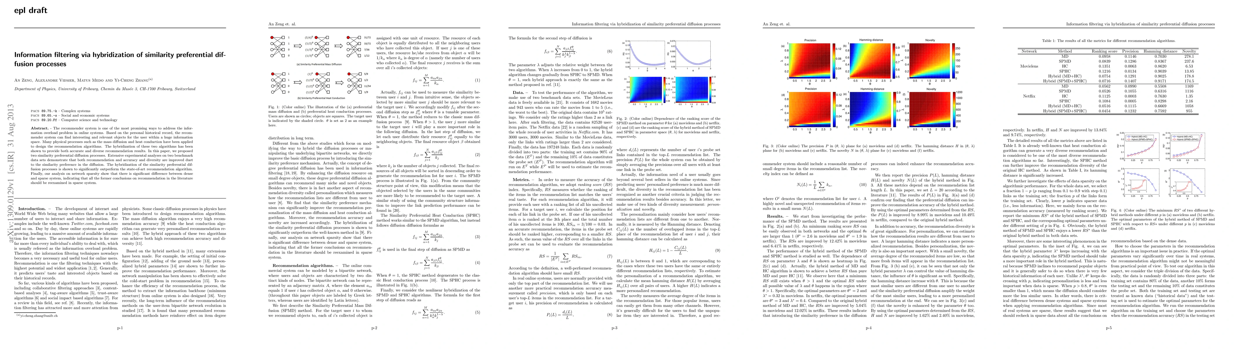 This paper proposes a hybrid recommendation algorithm that combines similarity preferential diffusion processes to improve accuracy and diversity in online systems, outperforming existing state-of-the-art algorithms.