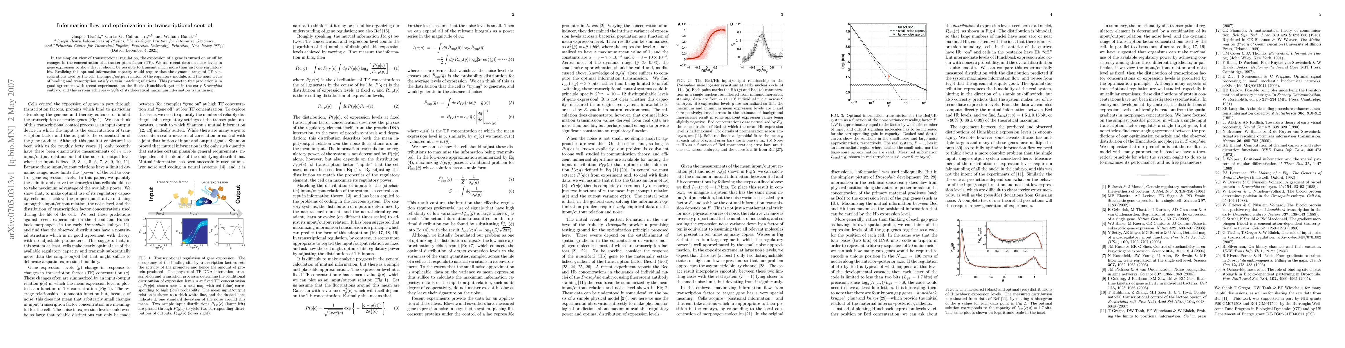 In the simplest view of transcriptional regulation, the expression of a gene is turned on or off by changes in the concentration of a transcription factor (TF). We use recent data on noise levels in gene expression to show that it should be possible to transmit much more than just one regulatory bit. Realizing this optimal information capacity would require that the dynamic range of TF concentrations used by the cell, the input/output relation of the regulatory module, and the noise levels of binding and transcription satisfy certain matching relations. This parameter-free prediction is in good agreement with recent experiments on the Bicoid/Hunchback system in the early Drosophila embryo, and this system achieves ~90% of its theoretical maximum information transmission.