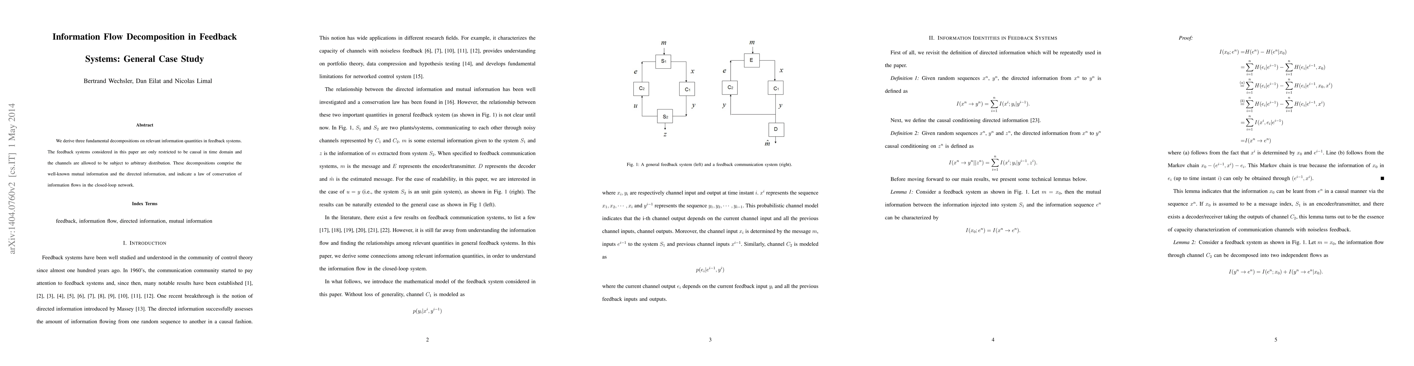 We derive three fundamental decompositions on relevant information quantities in feedback systems. The feedback systems considered in this paper are only restricted to be causal in time domain and the channels are allowed to be subject to arbitrary distribution. These decompositions comprise the well-known mutual information and the directed information, and indicate a law of conservation of information flows in the closed-loop network.