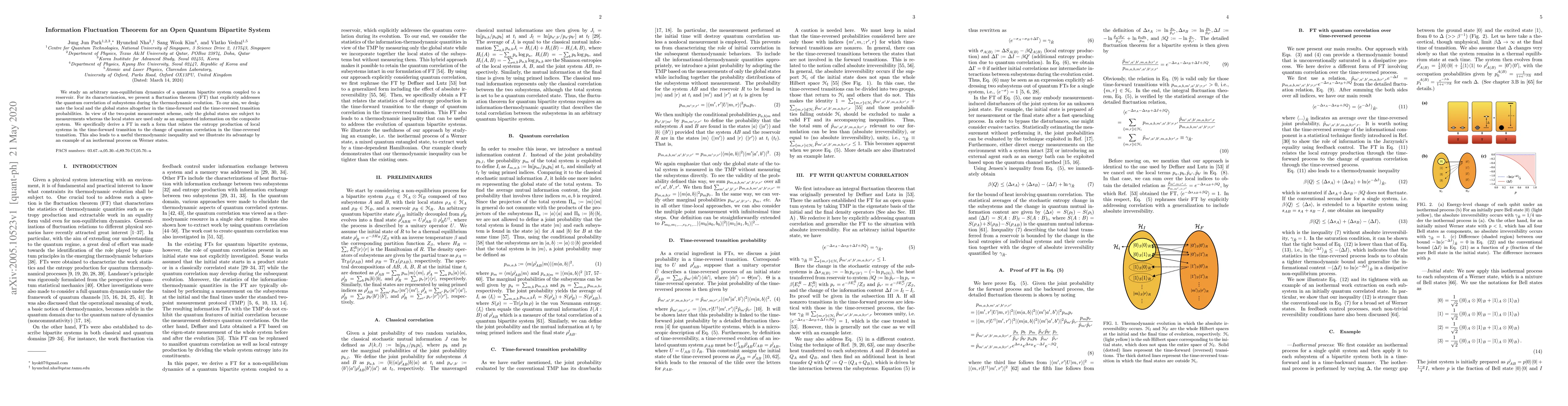 This paper develops an Information Fluctuation Theorem for a non-equilibrium quantum bipartite system, linking entropy production in forward time to quantum correlation changes in reversed time. It provides a thermodynamic inequality useful for understanding isothermal processes on Werner states.