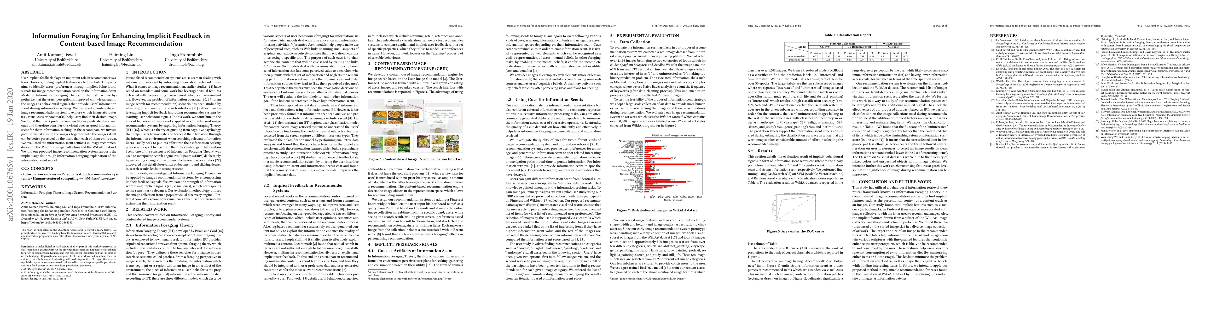 This paper explores enhancing implicit feedback in content-based image recommendation systems using the Information Foraging Theory. It finds that visual cues in images serve as effective behavioural signals, improving user perception and aiding in information seeking. The study concludes that visual cues, when combined with images, are better perceived than either alone.