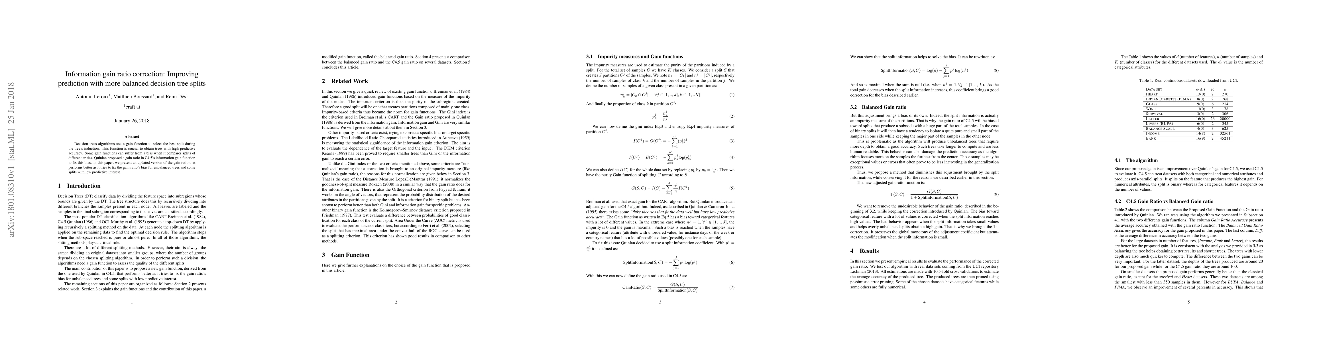 This paper proposes an improved version of the gain ratio used in decision tree algorithms to better balance splits and enhance predictive accuracy, addressing biases in the original gain ratio for unbalanced trees and low-interest splits.