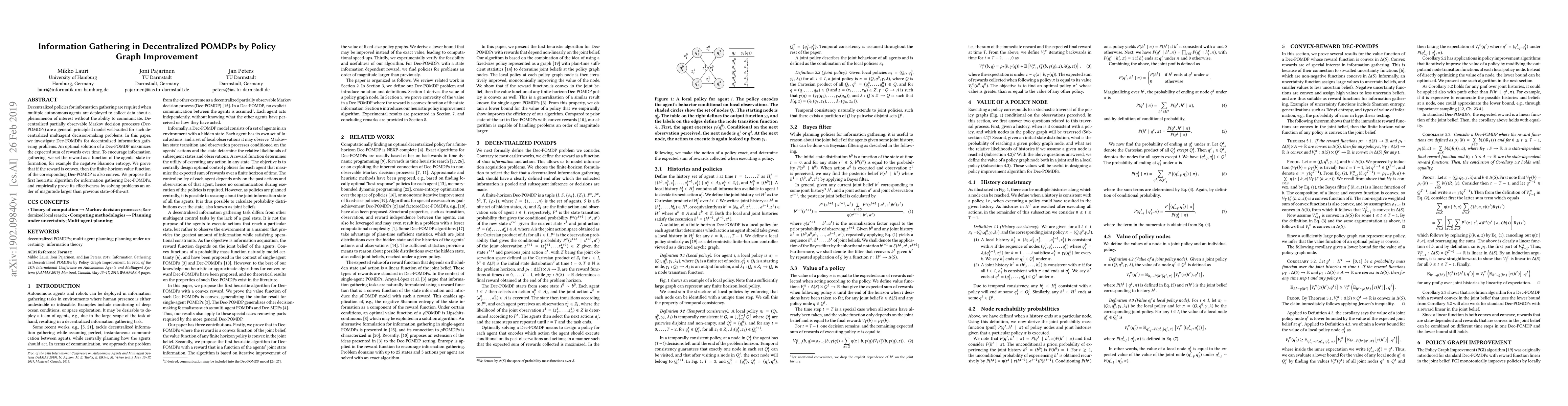 This paper explores decentralized partially observable Markov decision processes (Dec-POMDPs) for information gathering in environments where multiple agents operate independently. The authors propose a heuristic algorithm and prove its effectiveness, demonstrating it can solve larger problems than previous methods.