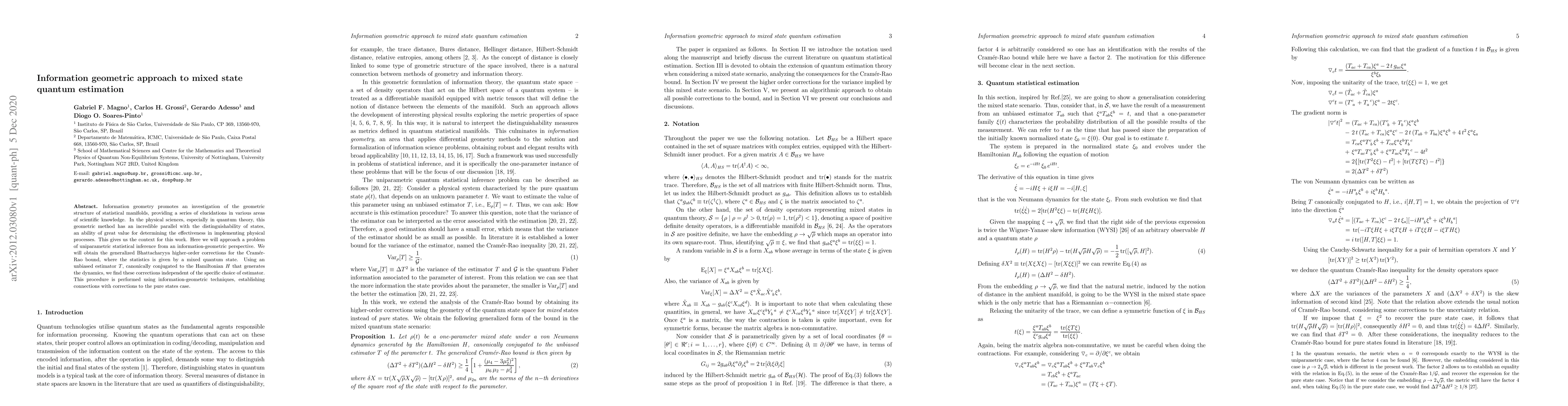 This paper employs information geometry to investigate uniparametric statistical inference for mixed quantum states, deriving generalised Bhattacharyya higher-order corrections to the Cramér-Rao bound. The study finds these corrections independent of the estimator choice, using information-geometric techniques to connect mixed state results to those of pure states.