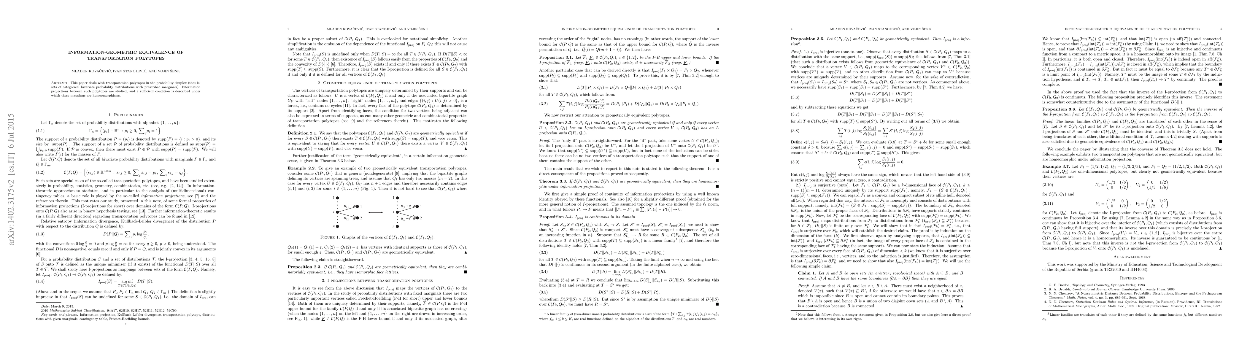 This paper deals with transportation polytopes in the probability simplex (that is, sets of categorical bivariate probability distributions with prescribed marginals). Information projections between such polytopes are studied, and a sufficient condition is described under which these mappings are homeomorphisms.