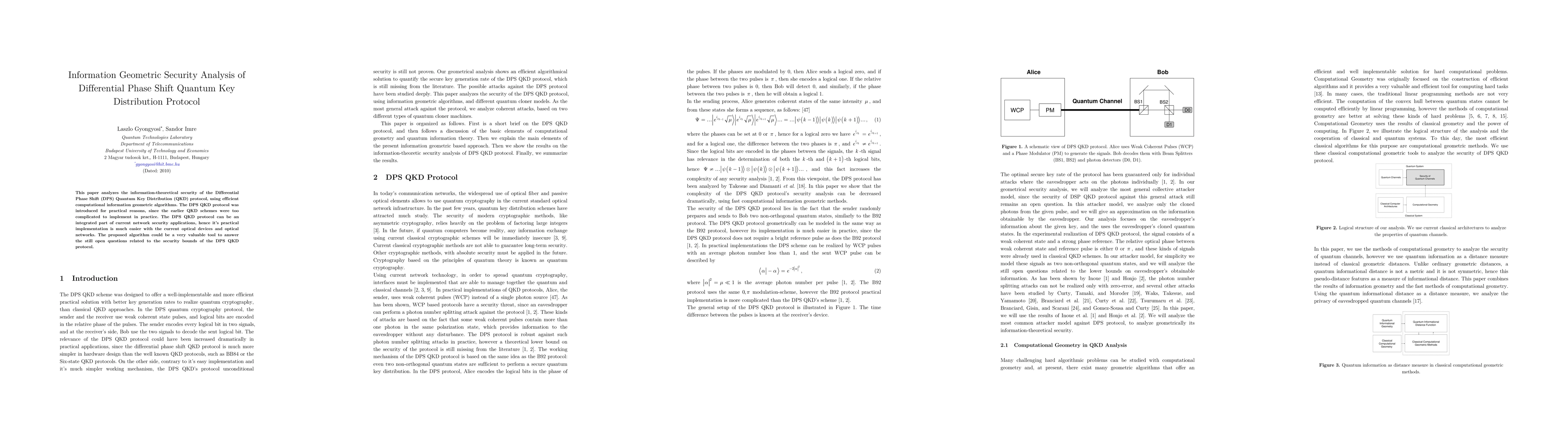 This paper analyzes the information-theoretical security of the Differential Phase Shift (DPS) Quantum Key Distribution (QKD) protocol, using efficient computational information geometric algorithms. The DPS QKD protocol was introduced for practical reasons, since the earlier QKD schemes were too complicated to implement in practice. The DPS QKD protocol can be an integrated part of current network security applications, hence it's practical implementation is much easier with the current optical devices and optical networks. The proposed algorithm could be a very valuable tool to answer the still open questions related to the security bounds of the DPS QKD protocol.