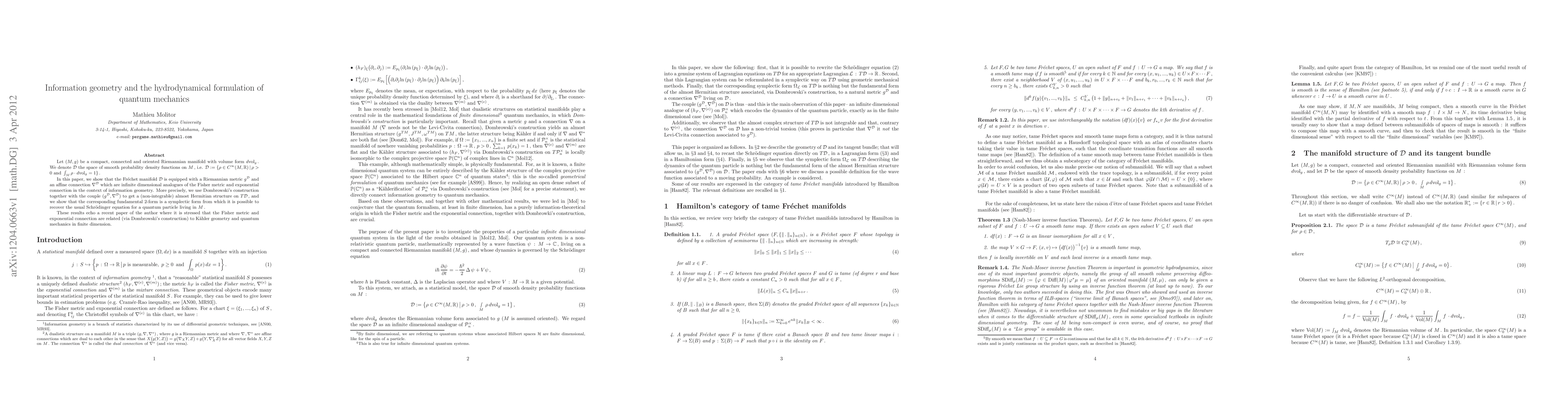 This paper demonstrates that the space of smooth probability density functions on a Riemannian manifold is equipped with a Riemannian metric and an affine connection analogous to the Fisher metric and exponential connection in information geometry, leading to a symplectic structure that recovers the Schrödinger equation for quantum mechanics. This extends the author's previous work linking finite-dimensional Fisher geometry to quantum mechanics.