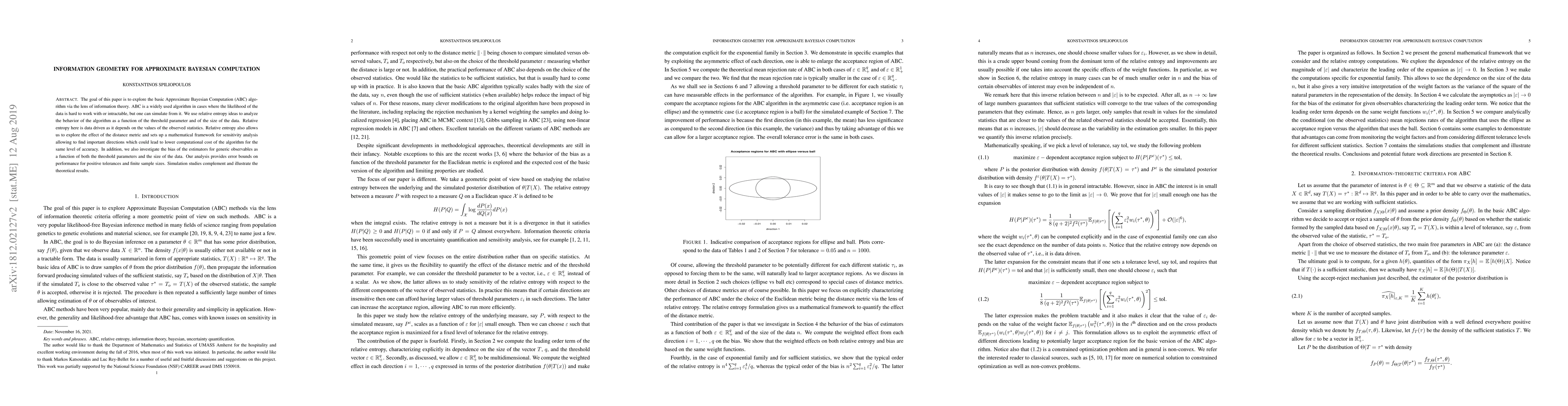This paper explores Approximate Bayesian Computation using information theory, analyzing its behavior and bias as a function of parameters and data size. It provides error bounds on performance for positive tolerances and finite sample sizes.