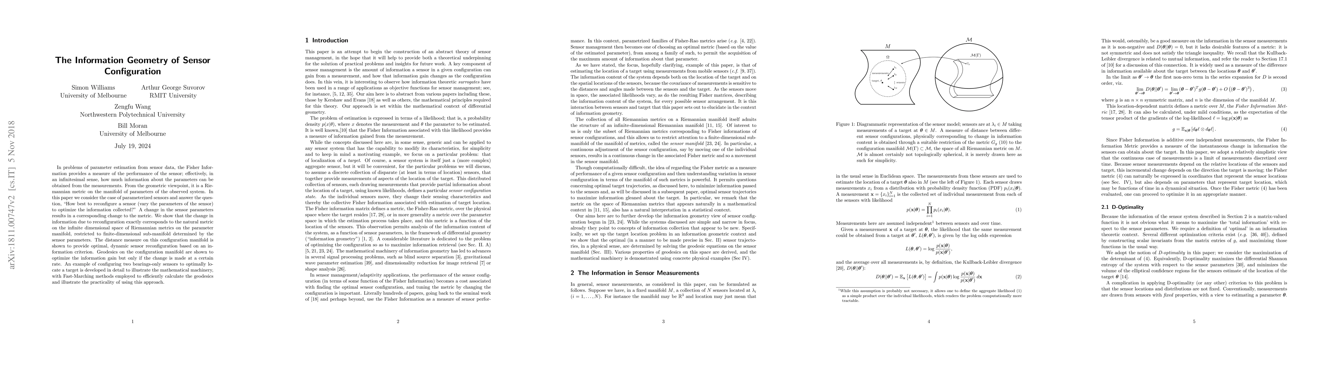 In problems of parameter estimation from sensor data, the Fisher Information provides a measure of the performance of the sensor; effectively, in an infinitesimal sense, how much information about the parameters can be obtained from the measurements. From the geometric viewpoint, it is a Riemannian metric on the manifold of parameters of the observed system. In this paper we consider the case of parameterized sensors and answer the question, "How best to reconfigure a sensor (vary the parameters of the sensor) to optimize the information collected?" A change in the sensor parameters results in a corresponding change to the metric. We show that the change in information due to reconfiguration exactly corresponds to the natural metric on the infinite dimensional space of Riemannian metrics on the parameter manifold, restricted to finite-dimensional sub-manifold determined by the sensor parameters. The distance measure on this configuration manifold is shown to provide optimal, dynamic sensor reconfiguration based on an information criterion. Geodesics on the configuration manifold are shown to optimize the information gain but only if the change is made at a certain rate. An example of configuring two bearings-only sensors to optimally locate a target is developed in detail to illustrate the mathematical machinery, with Fast-Marching methods employed to efficiently calculate the geodesics and illustrate the practicality of using this approach.