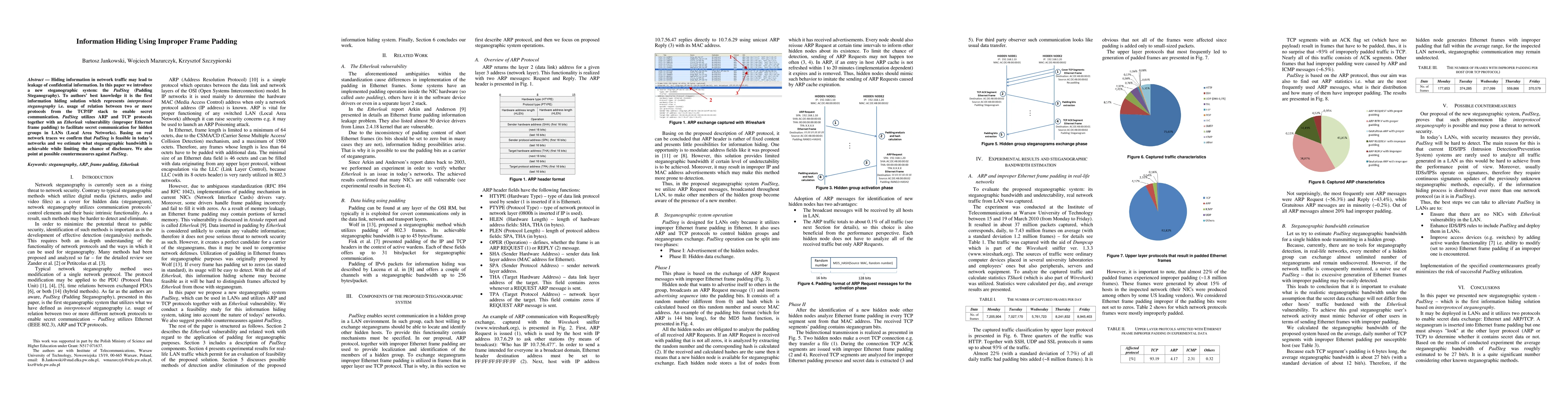This paper introduces PadSteg, a novel steganographic system that leverages improper Ethernet frame padding between ARP and TCP protocols to hide information in LANs. The study demonstrates its feasibility using real network traces and discusses potential countermeasures.