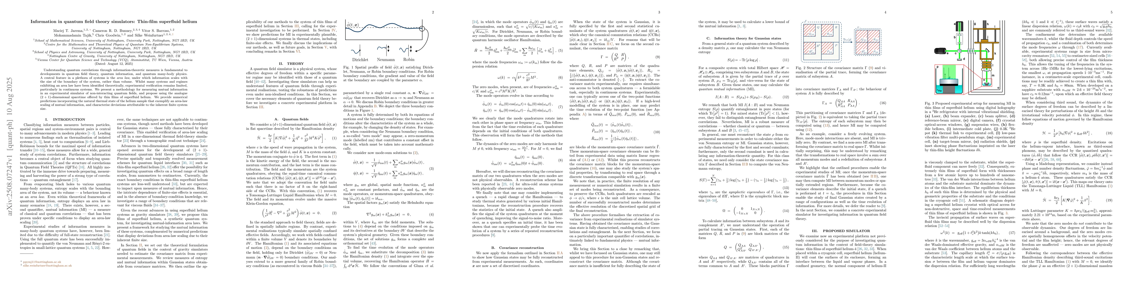 Understanding quantum correlations through information-theoretic measures is fundamental to developments in quantum field theory, quantum information, and quantum many-body physics. A central feature in a plethora of systems is the area law, under which information scales with the size of the boundary of the system, rather than volume. Whilst many systems and regimes exhibiting an area law have been identified theoretically, experimental verification remains limited, particularly in continuous systems. We present a methodology for measuring mutual information in an experimental simulator of non-interacting quantum fields, and propose using the analogue $(2 + 1)$-dimensional spacetime offered by thin films of superfluid helium. We provide numerical predictions incorporating the natural thermal state of the helium sample that exemplify an area-law scaling of mutual information, and characterise deviations attributable to the inherent finite system size.