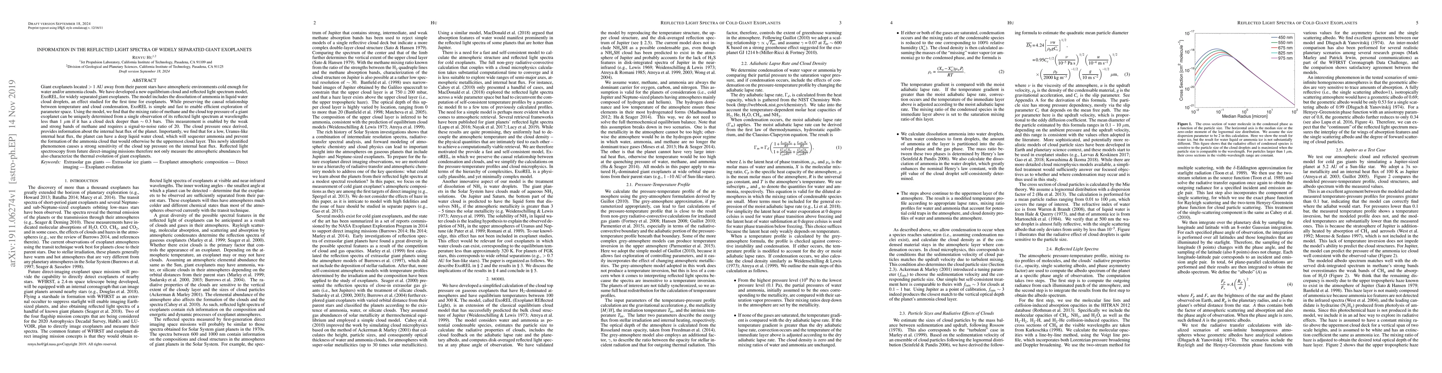 This paper introduces ExoREL, a new model for analyzing reflected light spectra of distant giant exoplanets, revealing that their atmospheric conditions can determine the mixing ratio of methane and cloud top pressure. The model highlights the impact of internal heat flux on cloud formation, showing that low heat flux can lead to deep water clouds sequestering ammonia, thus influencing the planet's thermal evolution.