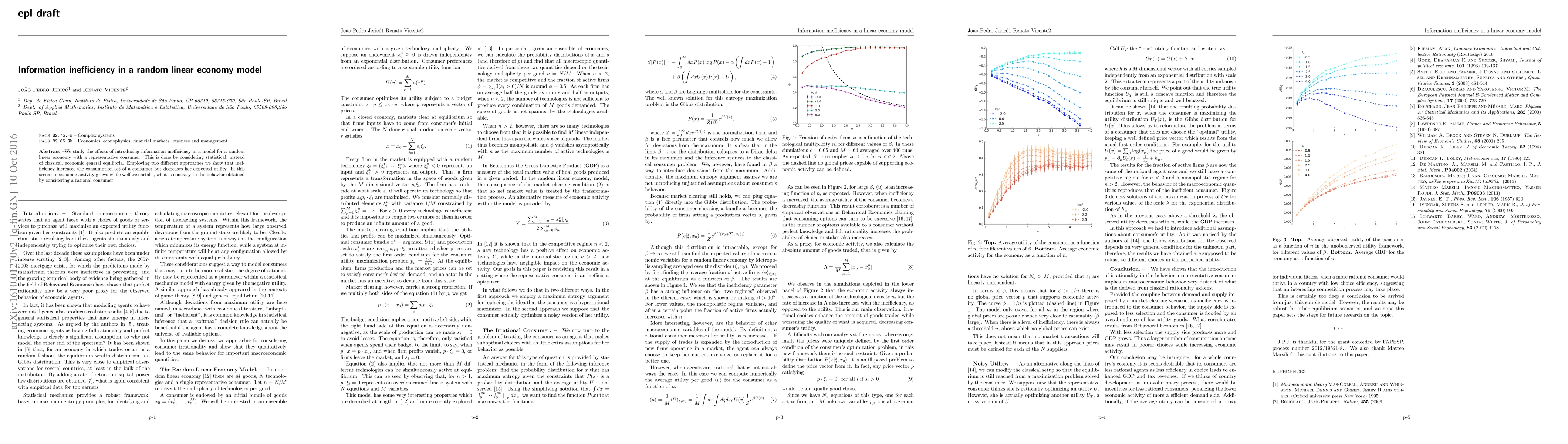 We study the effects of introducing information inefficiency in a model for a random linear economy with a representative consumer. This is done by considering statistical, instead of classical, economic general equilibria. Employing two different approaches we show that inefficiency increases the consumption set of a consumer but decreases her expected utility. In this scenario economic activity grows while welfare shrinks, that is the opposite of the behavior obtained by considering a rational consumer.