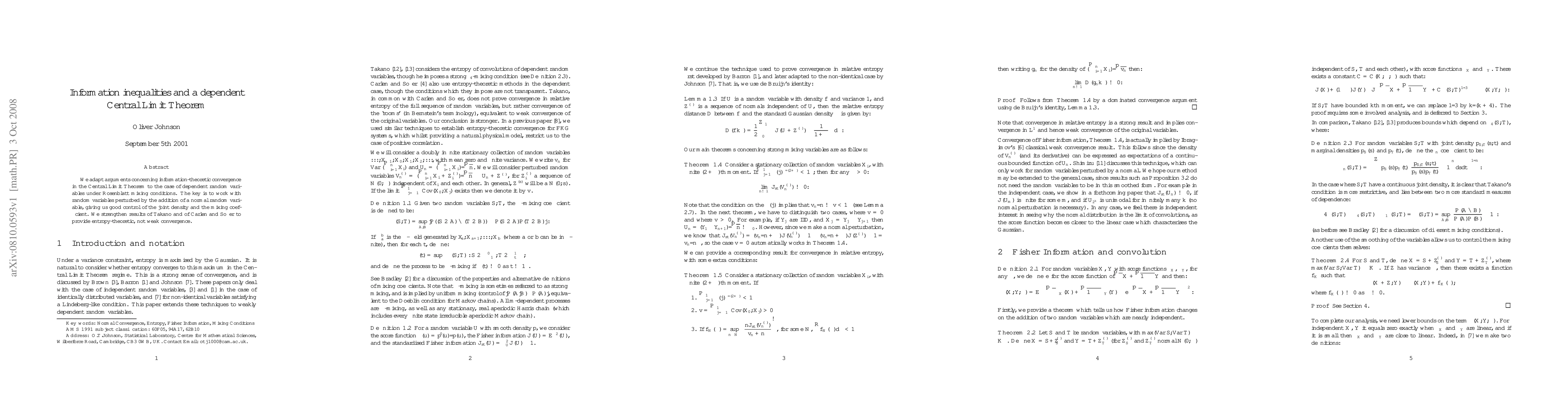 We adapt arguments concerning information-theoretic convergence in the Central Limit Theorem to the case of dependent random variables under Rosenblatt mixing conditions. The key is to work with random variables perturbed by the addition of a normal random variable, giving us good control of the joint density and the mixing coefficient. We strengthen results of Takano and of Carlen and Soffer to provide entropy-theoretic, not weak convergence.