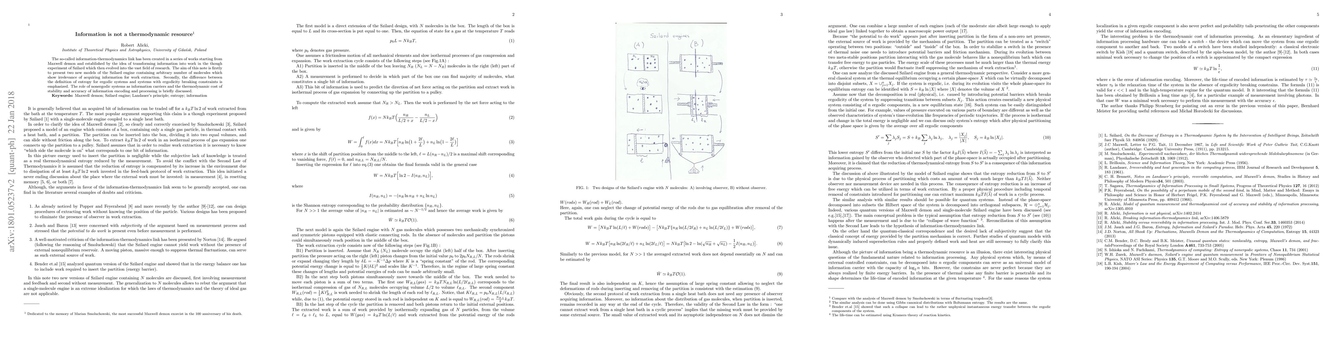 This paper argues that information does not function as a thermodynamic resource by presenting two new models of the Szilard engine that demonstrate the irrelevance of acquiring information for work extraction. It also highlights the distinction between entropy definitions in ergodic and nonergodic systems, discussing the thermodynamic costs associated with information encoding and processing.