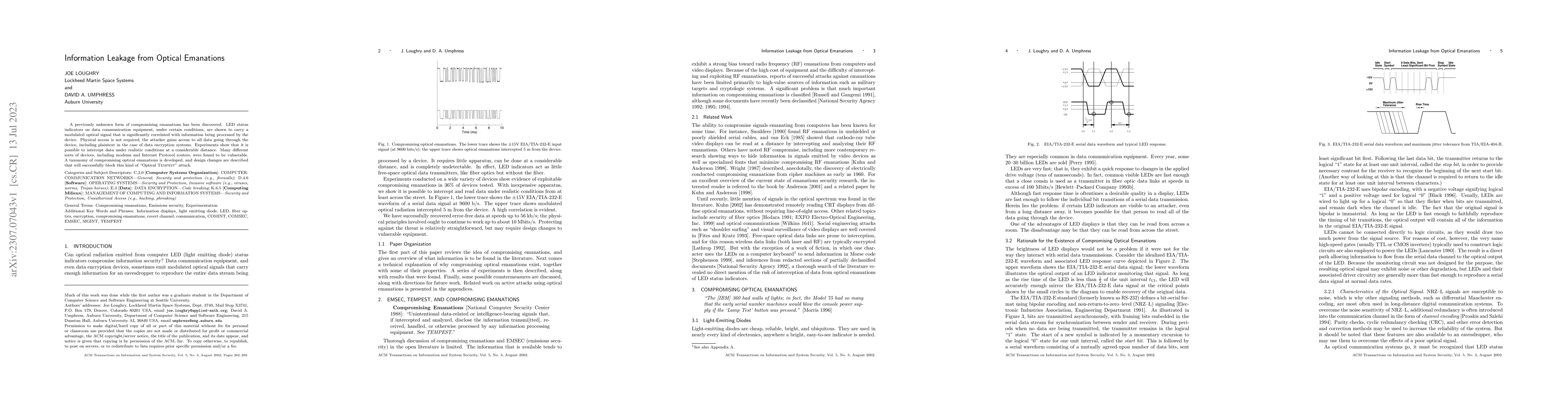 This paper uncovers a new form of "Optical TEMPEST" attack where LED indicators on communication devices emit modulated signals correlating with processed data, allowing attackers to intercept information at a distance without physical access. Proposed design changes aim to mitigate this vulnerability across various devices.