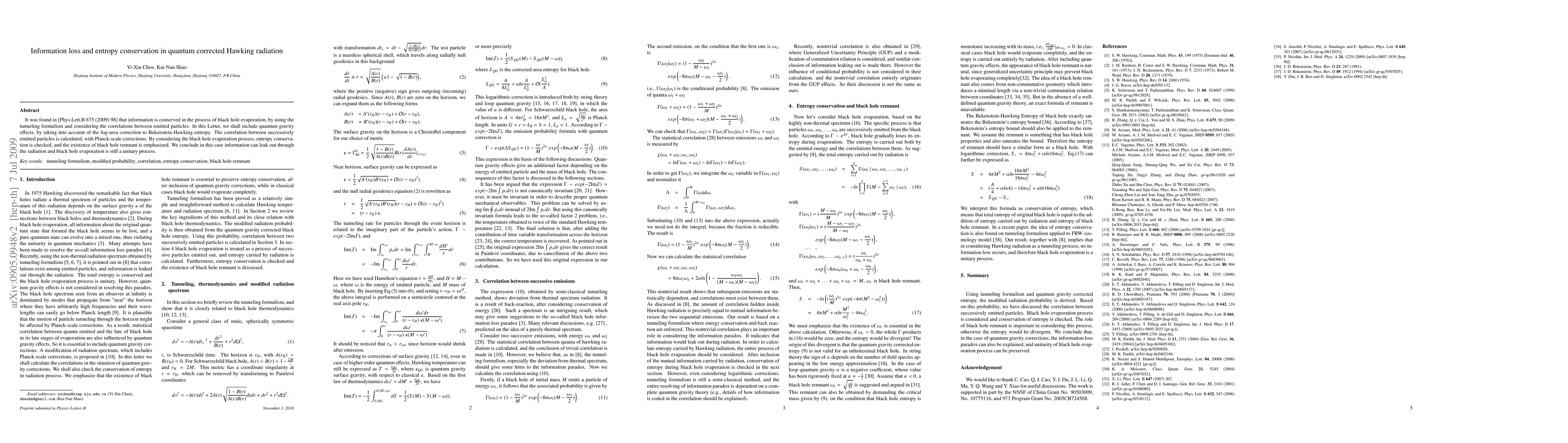 This paper examines quantum gravity corrections to Hawking radiation, showing that information conservation holds during black hole evaporation through tunneling formalism and correlations between emitted particles. It concludes that entropy conservation and information leakage are consistent with a unitary evaporation process.