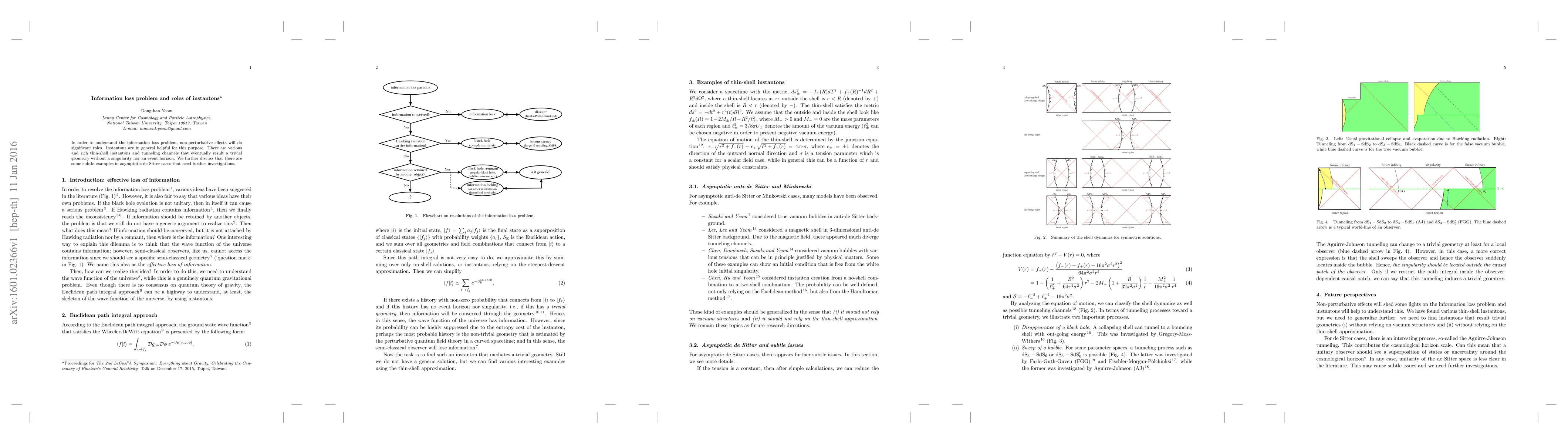 In order to understand the information loss problem, non-perturbative effects will do significant roles. Instantons are in general helpful for this purpose. There are various and rich thin-shell instantons and tunneling channels that eventually result a trivial geometry without a singularity nor an event horizon. We further discuss that there are some subtle examples in asymptotic de Sitter cases that need further investigations.