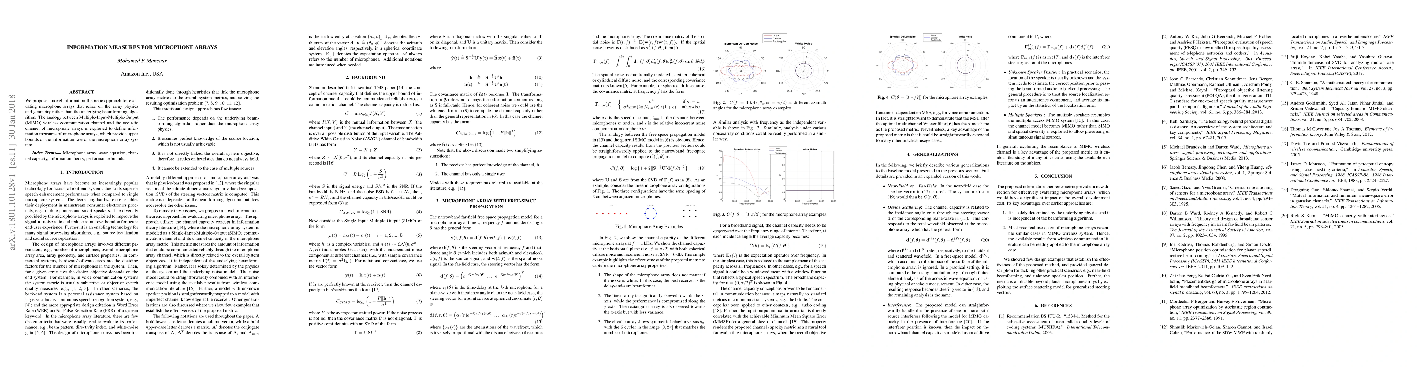 This paper introduces an information-theoretic method to assess microphone arrays based on their physical and geometric properties, using a MIMO wireless communication analogy to define measures that establish upper bounds for the array's information rate.