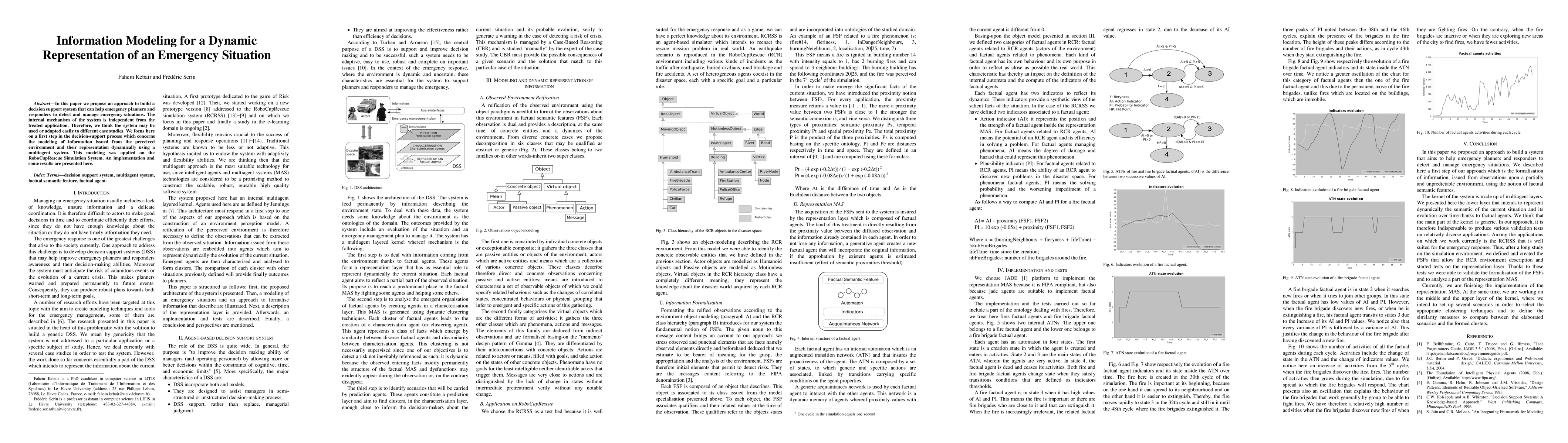 In this paper we propose an approach to build a decision support system that can help emergency planners and responders to detect and manage emergency situations. The internal mechanism of the system is independent from the treated application. Therefore, we think the system may be used or adapted easily to different case studies. We focus here on a first step in the decision-support process which concerns the modeling of information issued from the perceived environment and their representation dynamically using a multiagent system. This modeling was applied on the RoboCupRescue Simulation System. An implementation and some results are presented here.