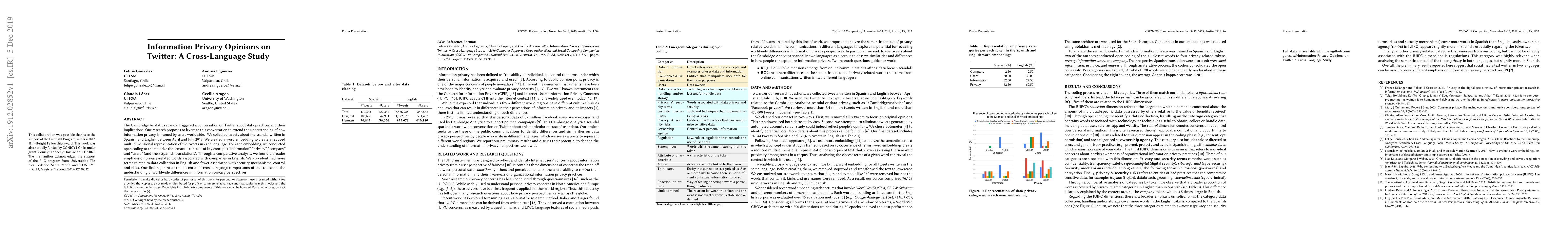 This study analyzes Twitter conversations in English and Spanish following the Cambridge Analytica scandal, revealing that English-speaking users emphasize privacy-related terms more in relation to companies, while Spanish-speaking users focus more on data collection and security mechanisms. The research suggests cross-language text analysis can uncover global differences in information privacy perspectives.