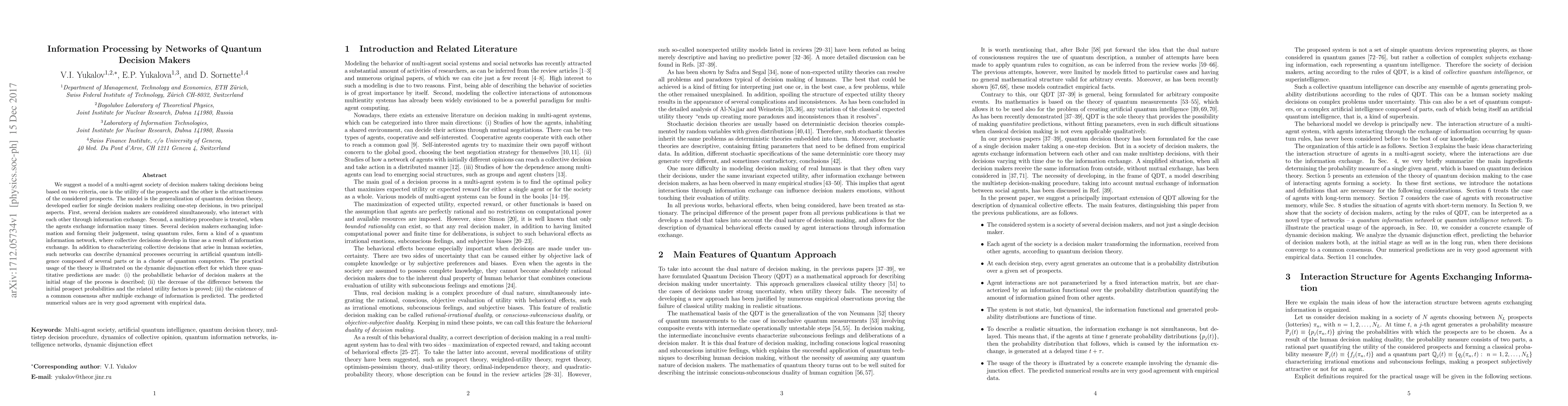 This paper proposes a quantum decision theory model for multi-agent networks where decision-makers interact and exchange information over multiple steps. The model predicts collective decision dynamics, including the dynamic disjunction effect, and aligns well with empirical data.