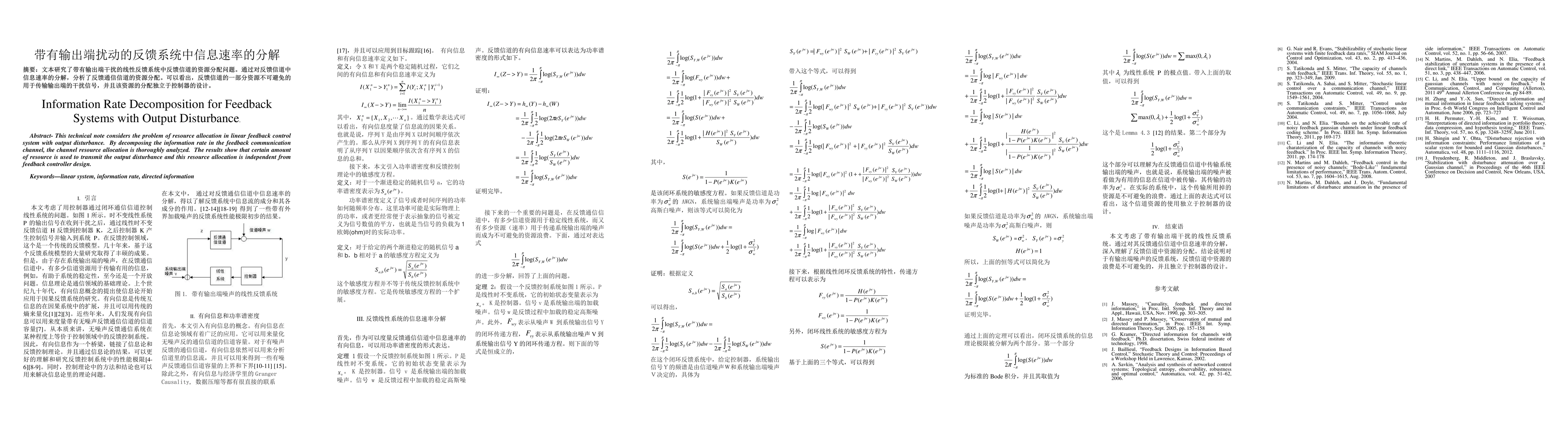 This paper decomposes the information rate in feedback control systems with output disturbance to analyze channel resource allocation. It reveals that a specific amount of resource is dedicated to the output disturbance, which is independent of the feedback controller design.