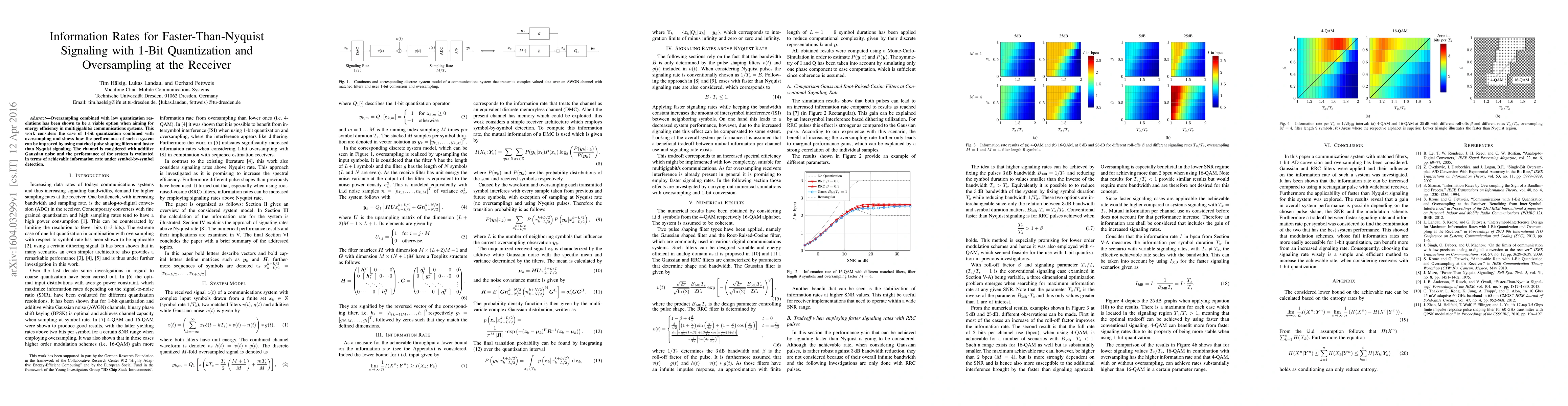 The work extends previous research on oversampling and 1-bit quantization by considering faster-than-Nyquist signaling and providing a comprehensive analysis of the trade-offs involved, along with specific numerical results for Gaussian and RRC filters.