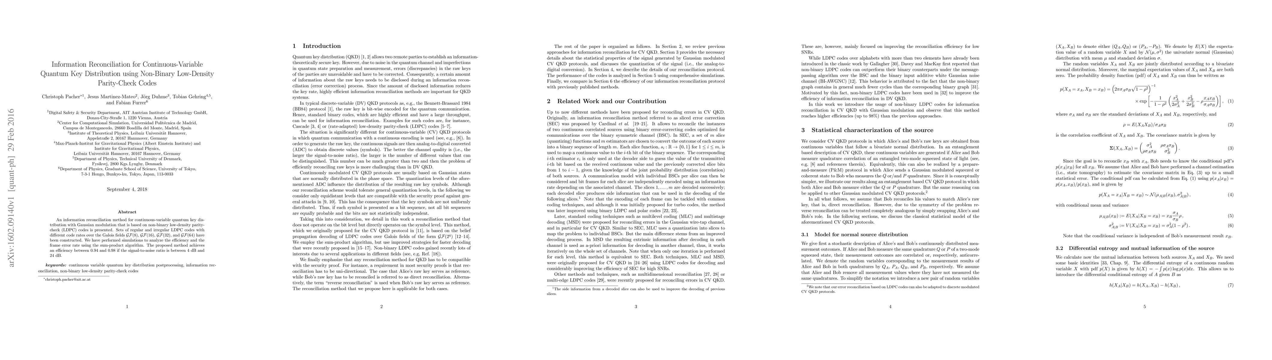 This paper presents an information reconciliation method for continuous-variable quantum key distribution using non-binary low-density parity-check codes. Simulations show the method achieves high efficiency (0.94-0.98) and low frame error rates across various signal-to-noise ratios.