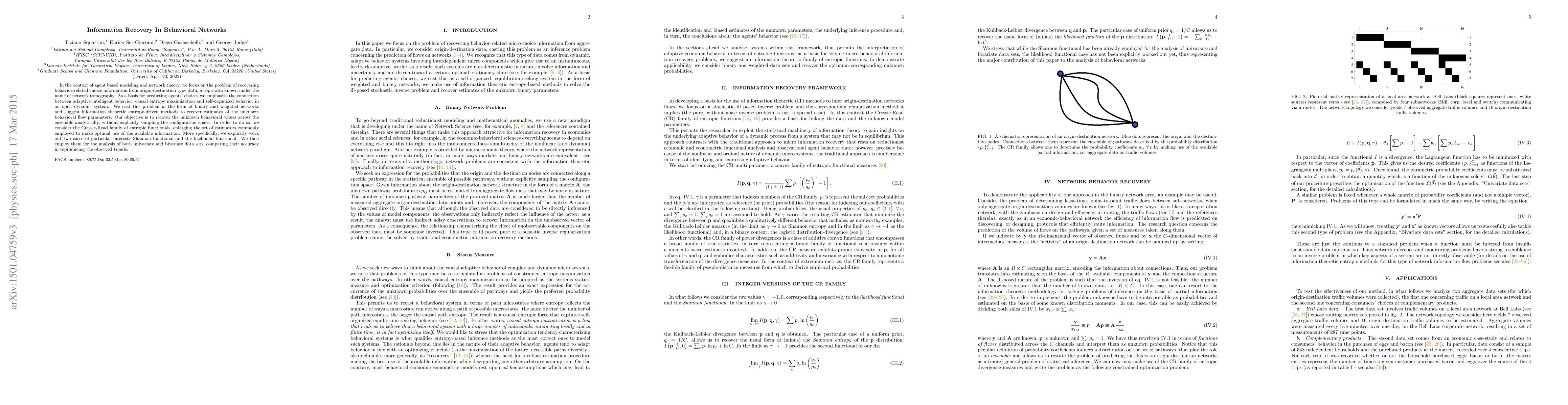 Researchers developed methods to recover information on agent behavior from network data, using entropy-driven approaches that compare to existing estimators. Their analysis showed improved accuracy in reproducing trends with new entropic functionals.