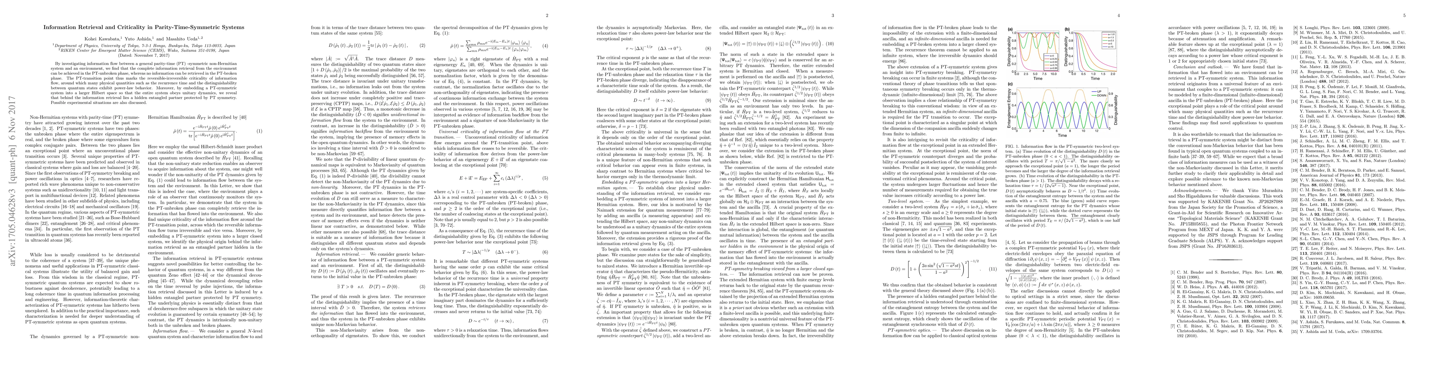 This paper explores information retrieval in PT-symmetric non-Hermitian systems, finding complete retrieval in the PT-unbroken phase but none in the PT-broken phase. The PT-transition signifies criticality in information flow, with power-law behaviors in related physical quantities, and reveals a hidden entangled partner protected by PT symmetry.