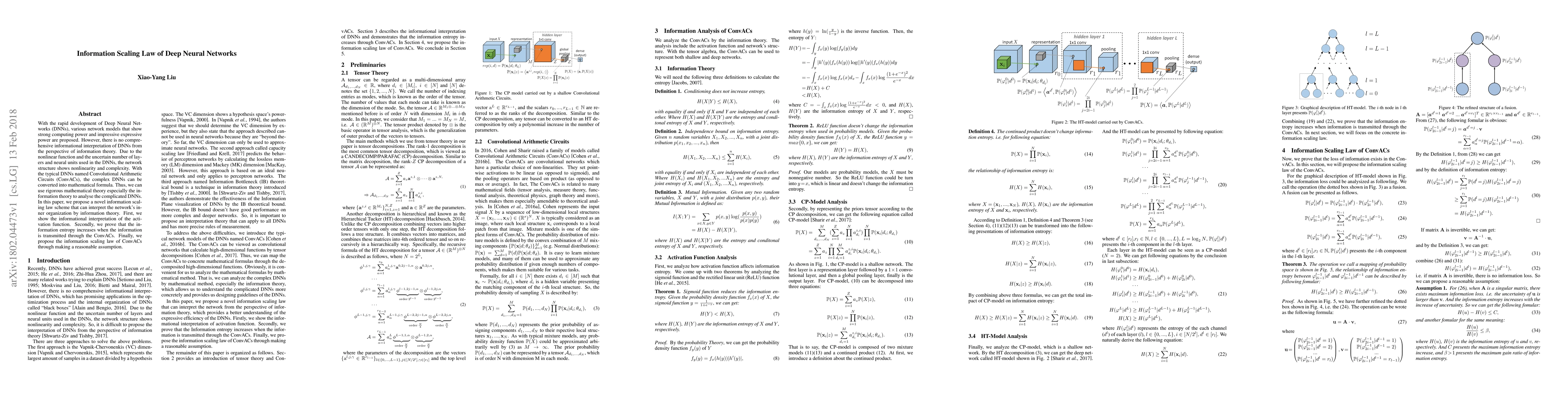 This paper proposes an information scaling law to interpret the inner organization of Convolutional Arithmetic Circuits (ConvACs) using information theory. It demonstrates that information entropy increases when information is transmitted through ConvACs and introduces a mathematical framework to analyze the complex structure of deep neural networks.