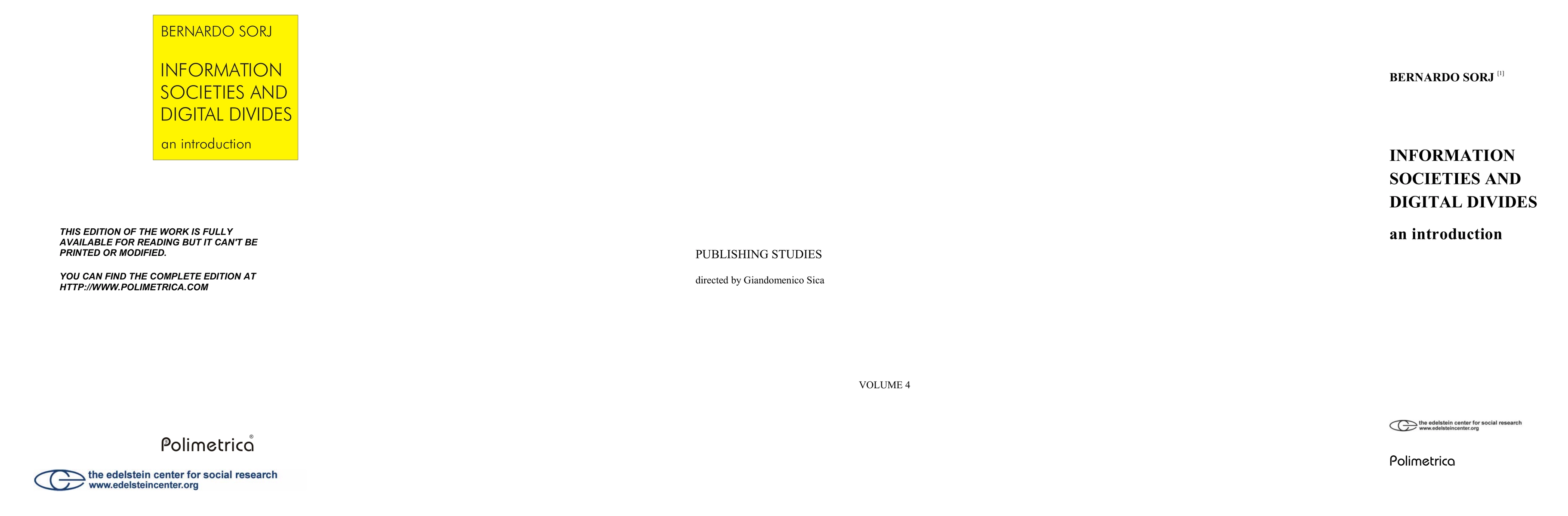 The book argues ICT are part of the set of goods and services that determine quality of life, social inequality and the chances for economic development. Therefore understanding the digital divide demands a broader discussion of the place of ICT within each society and in the international system. The author argues against the perspectives that either isolates ICT from other basic social goods (in particular education and employment) as well as those that argue that new technologies are luxury of a consumer society. Though the author accepts that new technologies are not a panacea for the problems of inequality, access to them become a condition of full integration of social life. Using examples mainly from Latin America, the work presents some general policy proposals on the fight against the digital divide which take in consideration other dimensions of social inequality and access to public goods. Bernardo Sorj was born in Montevideo, Uruguay. He is a naturalized Brazilian, living in Brazil since 1976. He studied anthropology and philosophy in Uruguay, and holds a B.A. and an M.A. in History and Sociology from Haifa University, Israel. He received his Ph.D. in Sociology from the University of Manchester in England. Sorj was a professor at the Department of Political Science at the Federal University of Minas Gerais and at the Institute for International Relations, PUC/RJ. The author of 20 books and more than 100 articles, was visiting professor and chair at many European and North American universities...