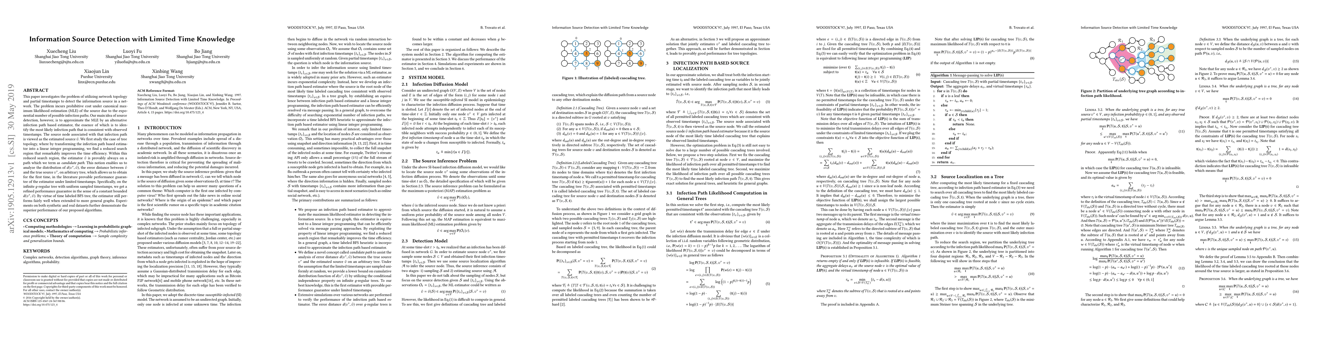 The paper proposes an infection path-based estimator for detecting information sources in networks using network topology and partial timestamps, transforming the estimator into a linear integer programming problem for time efficiency.