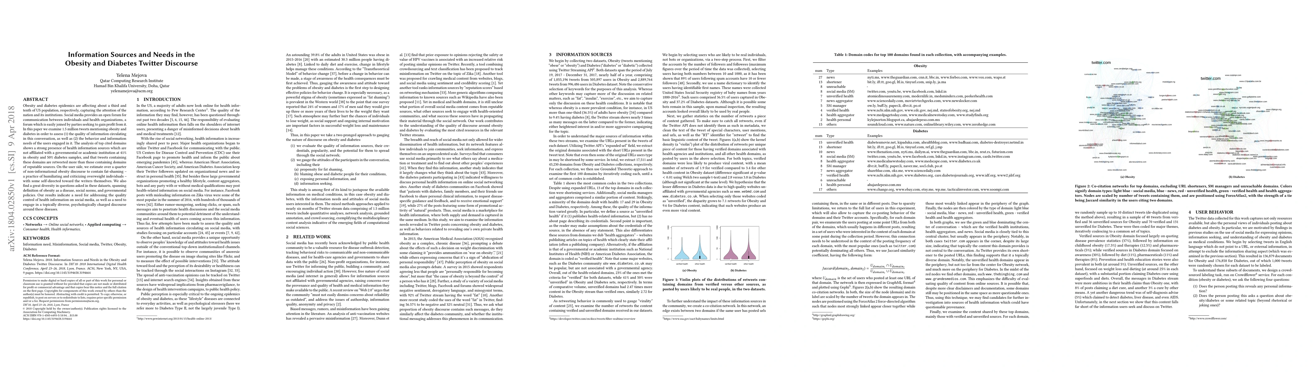 This paper analyzes 1.5 million tweets about obesity and diabetes to assess the quality of information and user behavior, finding that non-reputable sources dominate and non-informational tweets often contain fat-shaming. It highlights the need for better health information quality control and more diverse, sensitive discourse on social media.
