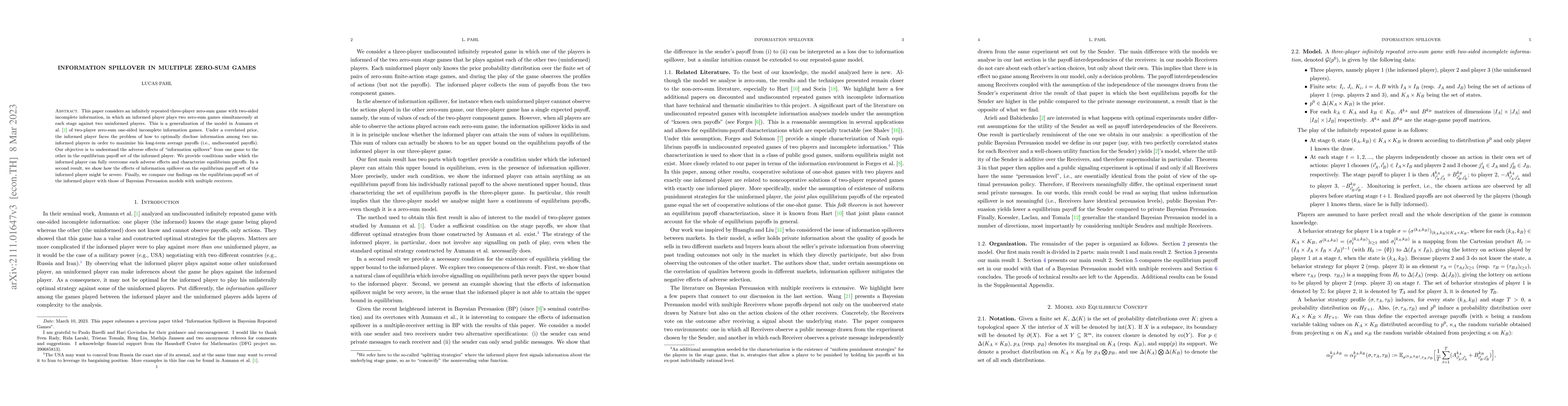 The study introduced a new measure of information spillover and demonstrated its applicability to games of incomplete information.
