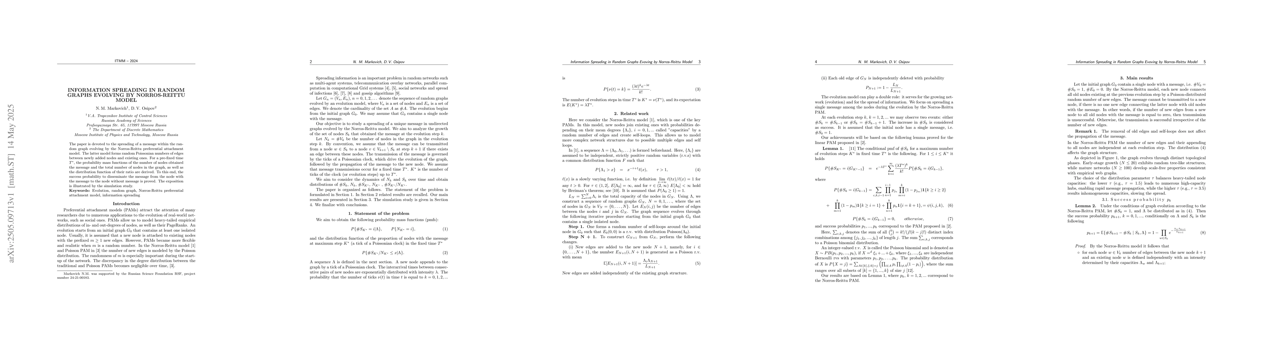 The paper derives exact probability distributions for message dissemination in the Norros-Reittu model, providing a theoretical foundation for understanding information spread in evolving random graphs.