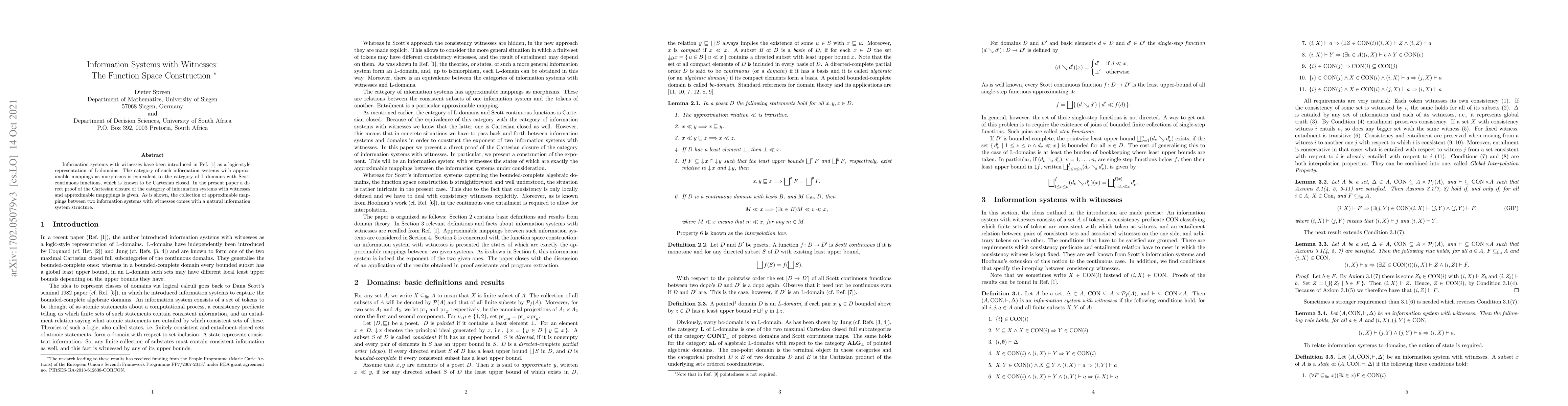 This paper provides a direct proof that the category of information systems with witnesses and approximable mappings is Cartesian closed, establishing a natural information system structure for the collection of approximable mappings between two such systems. This equivalence mirrors the relationship between L-domains and Scott continuous functions.